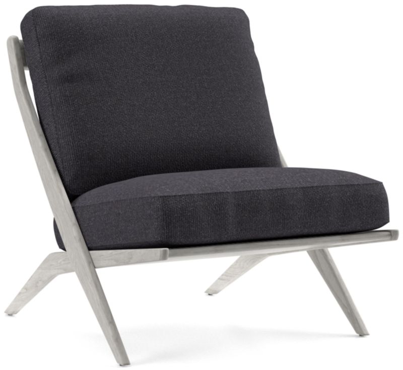 The classic slipper chair takes on mid-century vibes in our Pose chair. The solid ash frame tilts back with cantilever angles for a comfortable recline, showcasing the wood's beautiful grain and natural color. Clean-lined seat and back box cushions offer just the right mix of fiber and down for a comfortable yet supportive sit, while the linen-like upholstery layers on soft, touchable texture. The Pose natural accent chair is a Crate & Barrel exclusive.