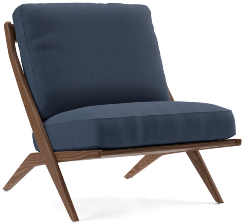 The classic slipper chair takes on mid-century vibes in our Pose chair. The solid ash frame tilts back with cantilever angles for a comfortable recline, showcasing the wood's beautiful grain and natural color. Clean-lined seat and back box cushions offer just the right mix of fiber and down for a comfortable yet supportive sit, while the linen-like upholstery layers on soft, touchable texture. The Pose natural accent chair is a Crate & Barrel exclusive.