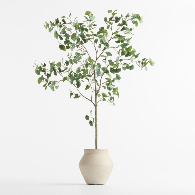 Enjoy the delightful foliage of gingko year-round with our faux version. Lush, life-like and unparalleled in quality, the tree practically flutters with countless ruffled, fan-shaped leaves in subtle green hues. The look is tall, airy and architectural. Although already potted in its own black plastic container, we recommend "planting" the gingko in one of the many attractive pots or baskets in our collection (sold separately).