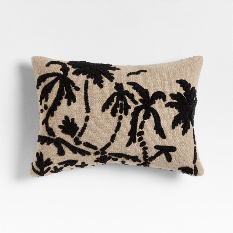 Praia Reversible Embroidered Palm Tree Striped 22"x15" Ink Black Throw Pillow Cover