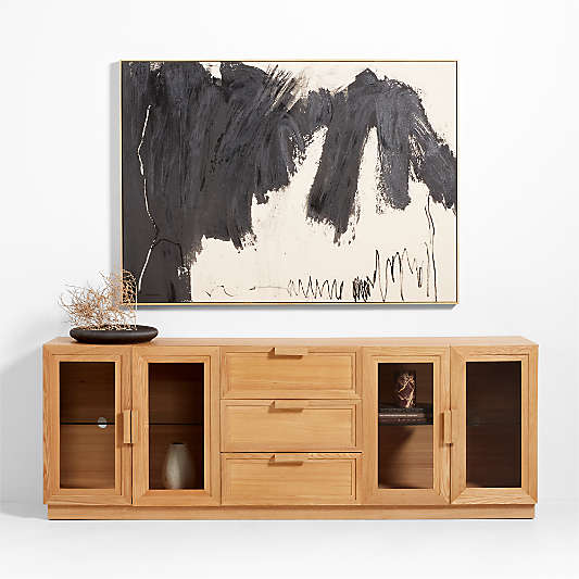 Decorate your home with wall art prints from Crate and Barrel. Discover a carefully curated collection of art prints, wall art, canvas prints, prints and posters, large canvas prints, black and white artwork, and framed wall art to inspire and elevate every corner of your home. Or, design a gallery wall with art prints in loud or vibrant colors to accent a room with soft hues and neutrals. Find a wall print that expresses your personal style and creates a unique feel to the space. Choose from gracefully painted fruit and vegetable or playful farm animal art prints for the kitchen or dining room. For a serene bedroom, try pairing a wall print of the ocean with marine-colored bedding, or something more earth-toned. Experimental abstract prints work in any room and create a visual centerpiece on the wall. Framed wall prints both add dimension and allow you to coordinate with other room accents—dark wood frames like walnut complement dark-stained wood accent and coffee tables, for example. Consider a canvas print for added definition and a lithograph canvas for high-quality artist reprints sure to draw attention. Wall prints add an extra oomph and are the perfect addition to any home.