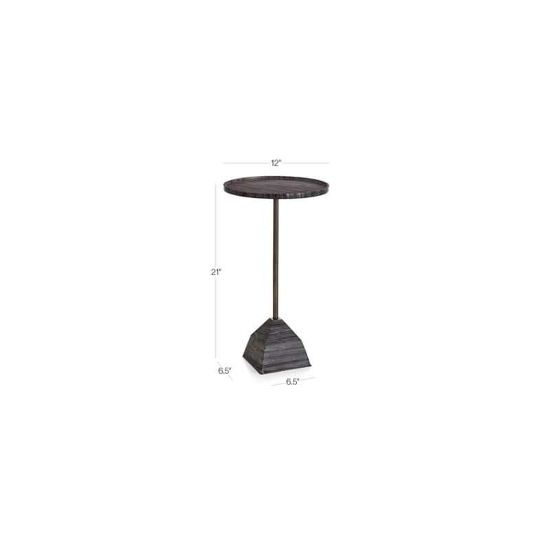 Named for the German word for "cheers," this fun-loving table rises to the occasion with a charming shape and size. The traylike top showcases black marble veined in grey, rising high on a slender column anchored by a sculptural, matching marble base. Partner with an arm chair or create a cluster with coordinating small and tall Prost tables, each with their own unique mix of materials. The Prost Medium Marble Drink Table is a Crate and Barrel exclusive.