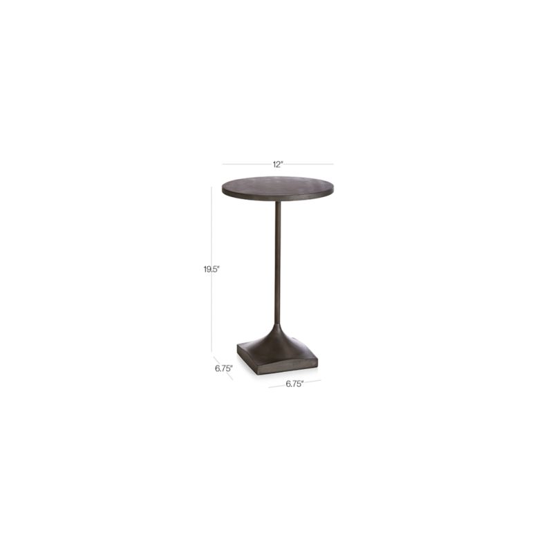 Named for the German word for "cheers," this fun-loving table rises to the occasion with a charming shape and size. Treated to an intriguing antique finish, the table hoists its round aluminum top high on a slender iron column anchored by a sculptural cast-aluminum base. Partner with an arm chair or create a cluster with coordinating medium and tall Prost tables, each with their own unique mix of materials. The Prost Small Metal Drink Table is a Crate and Barrel exclusive.
