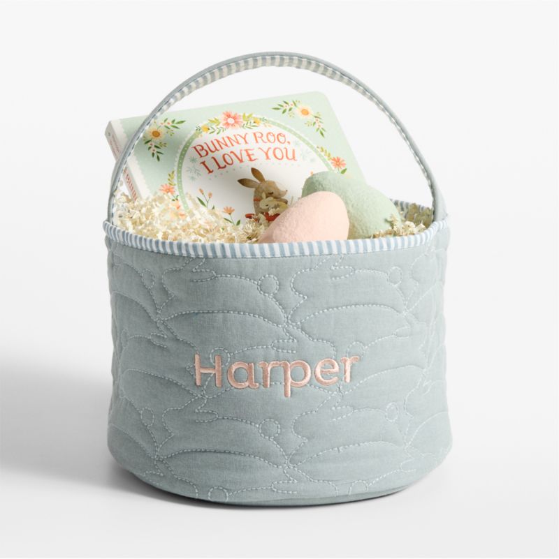 Our quilted Easter basket brings an extra bushel of sweetness to the day with its subtle embroidered bunny pattern. Constructed of organic cotton, it's sturdy enough to be filled to the brim with eggs and treats year after year, becoming part of your family's Easter tradition. Finished with a classic seersucker lining, it can be embroidered with your child's name or monogram to make it all the more special.