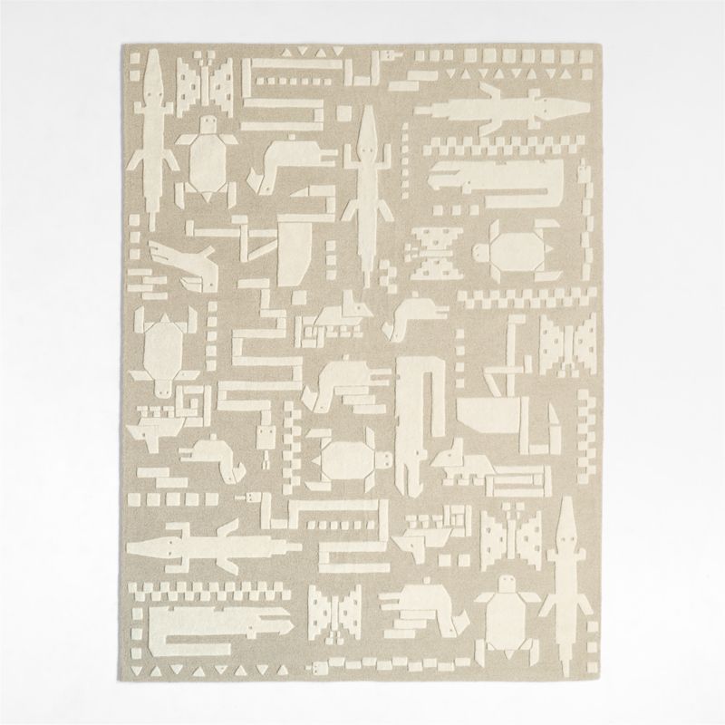 Welcome to the jungle! Alligators, turtles and other creatures are scattered across the beige backdrop of our Rainforest Rug, for a raised graphic print that's modern, playful and versatile all at once. Hand-tufted out of durable wool, the rug can handle years of heavy traffic and bring a spirit of adventure to any child's space.