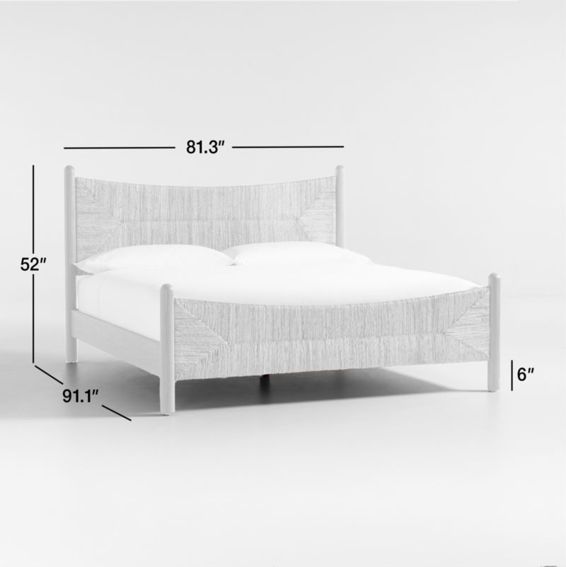 Inspired by Shaker rush-woven chairs, our Rambler collection warms up the bedroom with handcrafted artistry and the organic look of natural fiber. Woven by hand out of abaca seagrass, the bed's subtly arched head- and footboard delight with the rustic texture and organic color variations of natural fiber. Dowel posts made of wirebrushed oak charm with oversized proportions and rounded bullnose ends. An exclusive Crate & Barrel design, the Rambler king bed is made with oak and engineered wood certified by the Forest Stewardship Council (FSC ®), the environmental gold standard for responsibly managed forests.