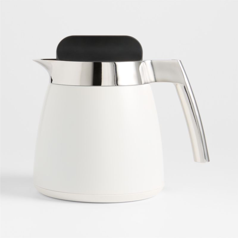 Designed for use with the Ratio 8 coffeemaker, this double-walled carafe keeps coffee hot for up to 90 minutes. The stainless steel carafe features a counterweighted handle for a well-balanced hold and a precision spout for mess-free pouring. Complementing the coffeemaker's sleek design, the carafe features an exclusive matte finish in linen white.