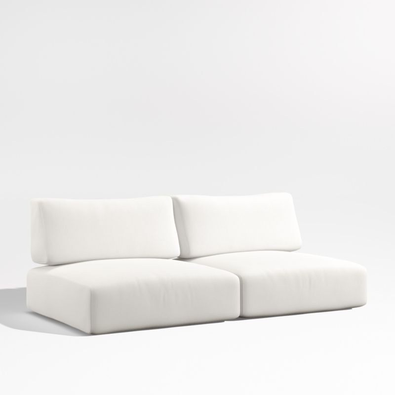 Make our Mallorca outdoor sofa the ideal spot for soaking up the sun in style by adding this soft-yet-supportive cushion set. Woven in an elevated neutral, the ivory fabric complements the weathered driftwood finish on the sofa (sold separately). We love the way the thick cushions pair with the slat frame for low, loungey outdoor seating.