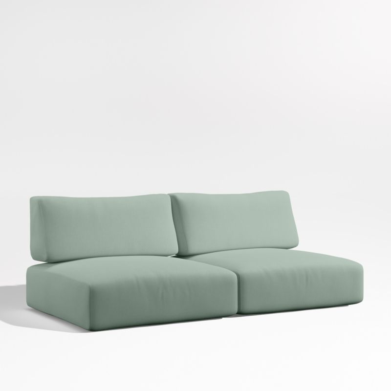 Make our Mallorca outdoor sofa the ideal spot for soaking up the sun in style by adding this soft-yet-supportive cushion set. Woven in serene blue, the all-weather fabric complements the weathered driftwood finish on the sofa (sold separately). We love the way the thick cushions pair with the breezy slat frame for low, loungey outdoor seating.