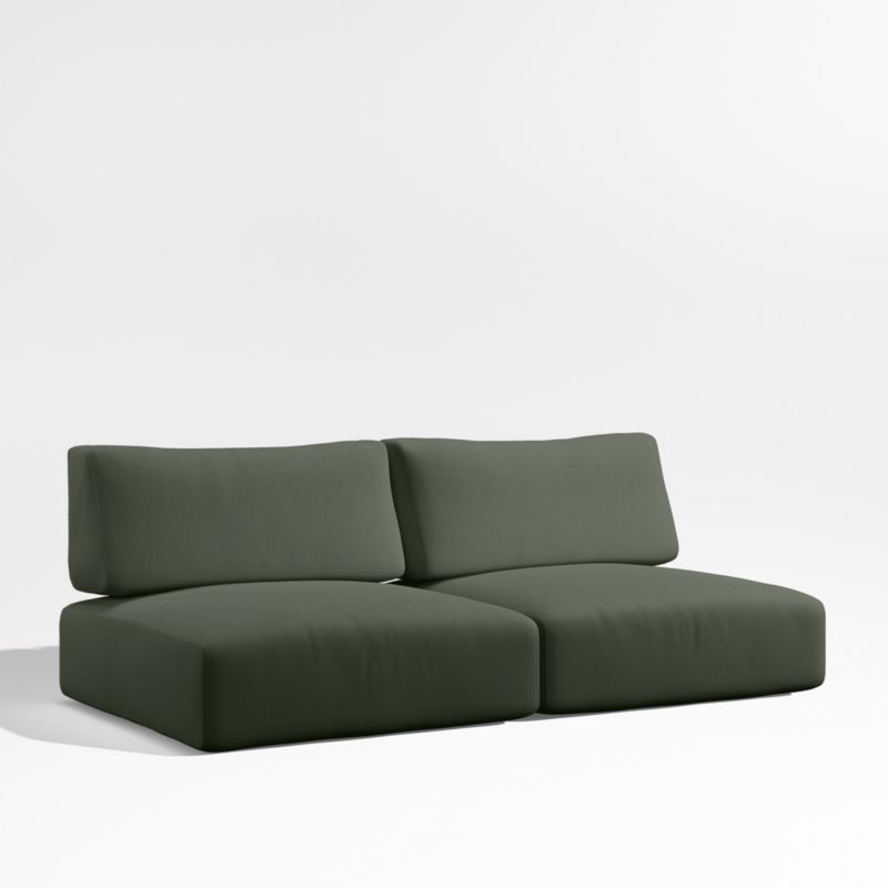 Make our Mallorca outdoor sofa the ideal spot for soaking up the sun in style by adding this soft-yet-supportive cushion set. Woven in sage green, the all-weather fabric complements the weathered driftwood finish on the sofa (sold separately). We love the way the thick cushions pair with the breezy slat frame for low, loungey outdoor seating.