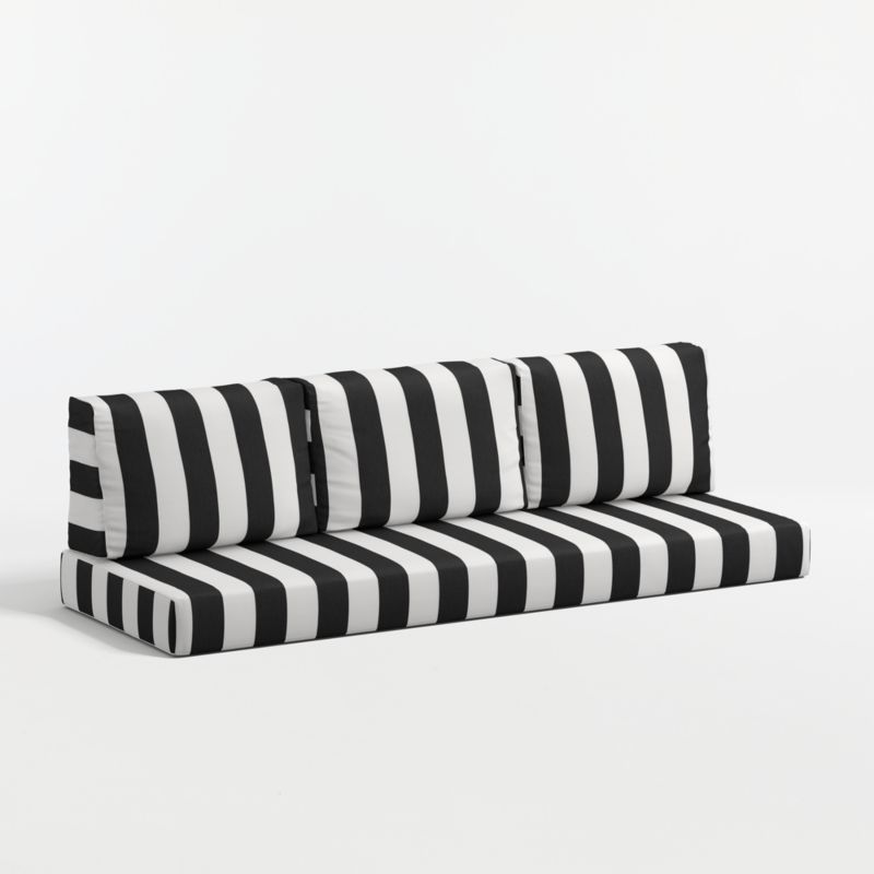 Add plush comfort and modern style to our teak or metal Walker sofa with boxy cushions. Covered in durable Sunbrella outdoor fabric that resists fading, staining, mold and mildew, the cushions are neatly tailored with zippers to ventilate and facilitate drying. Our Walker Sunbrella® Sofa Cushions are a Crate and Barrel exclusive.