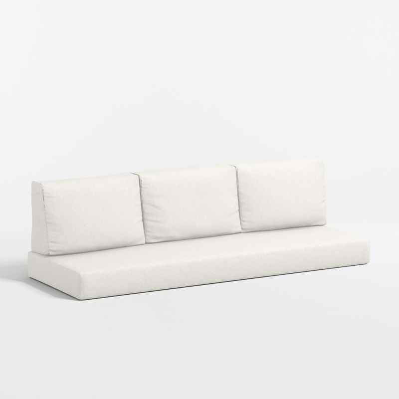 Add plush comfort and modern style to our teak or metal Walker sofa with boxy cushions. Covered in durable Sunbrella outdoor fabric that resists fading, staining, mold and mildew, the cushions are neatly tailored with zippers to ventilate and facilitate drying. Our Walker Sunbrella® Sofa Cushions are a Crate and Barrel exclusive.