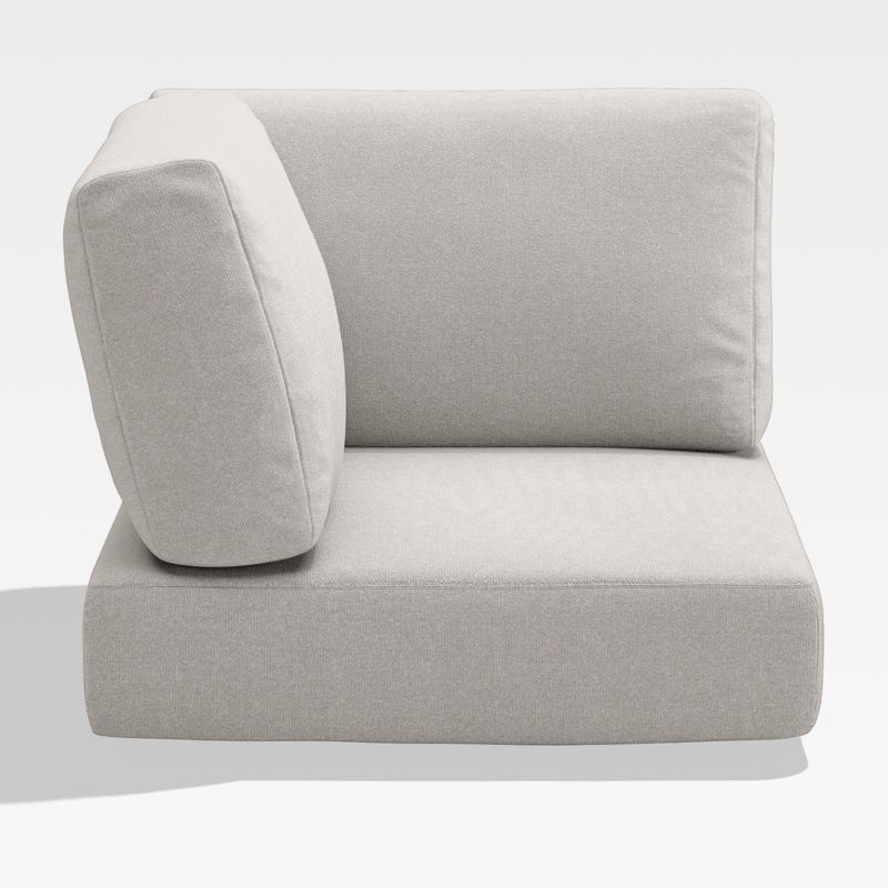 Add plush comfort and modern style to your Walker sectional corner with boxy seat and back cushions. Covered in weather-resistant Sunbrella fabric, the cushions are neatly tailored with zippers that help to ventilate and facilitate drying. The Walker outdoor sectional corner cushions are exclusive to Crate & Barrel.