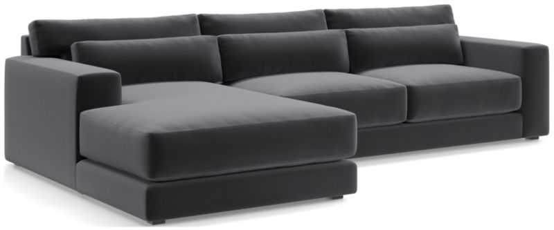 Years in the making, we pulled in customer-favorite design elements to create our Retreat sectional, a plush new hangout spot with a clean, modern look. The combination of right-arm sofa and left-arm chaise has soft-yet-supportive seat cushions and lumbar pillows that remove for a deeper, more loungey sit. Extra-wide arms provide a spot to park a book, tablet or bowl of popcorn, and T-shaped back cushions snuggle in nicely to keep the look clean and current. Textural and forgiving, the upholstery fabric we love is Serene—a beach-cleanable, family-friendly boucle with a sculpted weave that reads timeless and contemporary.