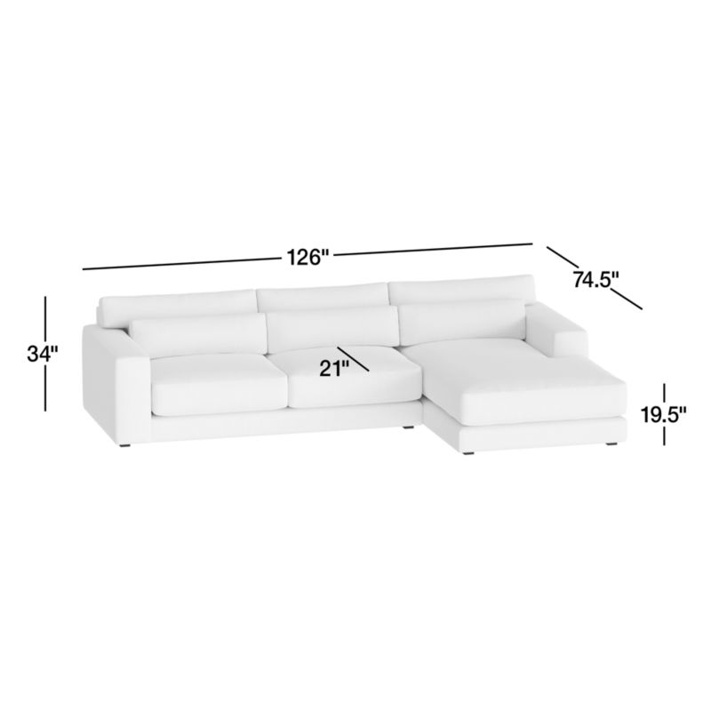 Years in the making, we pulled in customer-favorite design elements to create our Retreat sectional, a plush new hangout spot with a clean, modern look. The combination of right-arm chaise and left-arm sofa has soft-yet-supportive seat cushions and lumbar pillows that remove for a deeper, more loungey sit. Extra-wide arms provide a spot to park a book, tablet or bowl of popcorn, and T-shaped back cushions snuggle in nicely to keep the look clean and current. Textural and forgiving, the upholstery fabric we love is Serene—a beach-cleanable, family-friendly sculpted weave that reads timeless and contemporary.