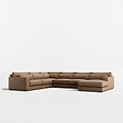 Years in the making, we pulled in customer-favorite design elements to create Retreat, a plush new hangout spot with a clean, modern look. The sectional sofa has soft-yet-supportive seat cushions and lumbar pillows that remove for a deeper, more loungey sit. Extra-wide arms provide a spot to park a book, tablet or bowl of popcorn, and T-shaped back cushions snuggle in nicely to keep the look clean and current. The leather upholstery proudly displays natural markings for a rustic vibe. Only a coat of wax is applied to unify the color and lend a smooth finish to a handsome leather that will continue to charm as it develops a rich patina over time.