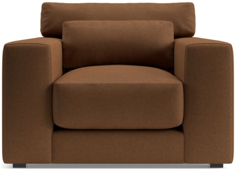 Years in the making, we pulled in customer-favorite design elements to create Retreat, a plush new hangout spot with a clean, modern look. The accent chair has a soft-yet-supportive seat cushion and a lumbar pillow that removes for a deeper, more loungey sit. Extra-wide arms provide a spot to park a book, tablet or bowl of popcorn, and a T-shaped back cushion snuggles in nicely to keep the look clean and current. Textural and forgiving, the upholstery fabric we love is Serene—a bleach-cleanable, family-friendly sculpted weave that reads timeless and contemporary.