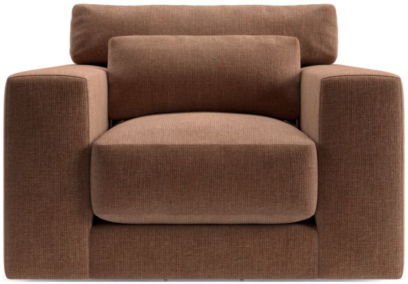 Years in the making, we pulled in customer-favorite design elements to create Retreat, a plush new hangout spot with a clean, modern look. The swivel chair has a soft-yet-supportive seat cushion and a lumbar pillow that removes for a deeper, more loungey sit. Extra-wide arms provide a spot to park a book, tablet or bowl of popcorn, and a T-shaped back cushion snuggles in nicely to keep the look clean and current. Textural and forgiving, the upholstery fabric we love is Serene—a bleach-cleanable, family-friendly sculpted weave that reads timeless and contemporary.