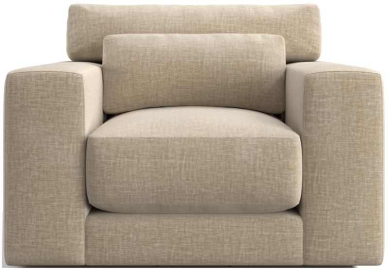 Years in the making, we pulled in customer-favorite design elements to create Retreat, a plush new hangout spot with a clean, modern look. The swivel chair has a soft-yet-supportive seat cushion and a lumbar pillow that removes for a deeper, more loungey sit. Extra-wide arms provide a spot to park a book, tablet or bowl of popcorn, and a T-shaped back cushion snuggles in nicely to keep the look clean and current. Textural and forgiving, the upholstery fabric we love is Serene—a bleach-cleanable, family-friendly sculpted weave that reads timeless and contemporary.