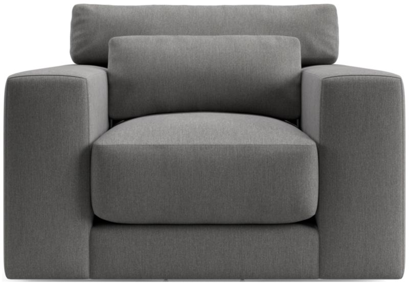Years in the making, we pulled in customer-favorite design elements to create Retreat, a plush new hangout spot with a clean, modern look. The swivel chair has a soft-yet-supportive seat cushion and a lumbar pillow that removes for a deeper, more loungey sit. Extra-wide arms provide a spot to park a book, tablet or bowl of popcorn, and a T-shaped back cushion snuggles in nicely to keep the look clean and current. Textural and forgiving, the upholstery fabric we love is Serene—a bleach-cleanable, family-friendly sculpted weave that reads timeless and contemporary.