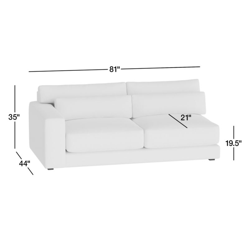 Years in the making, we pulled in customer-favorite design elements to create our Retreat sectional, a plush new hangout spot with a clean, modern look. The left-arm sofa has soft-yet-supportive seat cushions and lumbar pillows that remove for a deeper, more loungey sit. The extra-wide arm provides a spot to park a book, tablet or bowl of popcorn, and T-shaped back cushions snuggle in nicely to keep the look clean and current. Textural and forgiving, the upholstery fabric we love is Serene—a bleach-cleanable, family-friendly sculpted weave that reads timeless and contemporary. Combine with other pieces to form a custom sectional to suit your space.