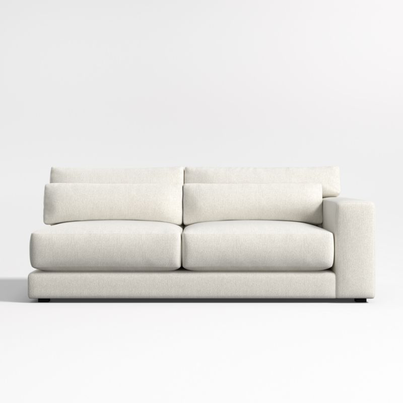 Years in the making, we pulled in customer-favorite design elements to create our Retreat sectional, a plush new hangout spot with a clean, modern look. The right-arm sofa has soft-yet-supportive seat cushions and lumbar pillows that remove for a deeper, more loungey sit. The extra-wide arm provides a spot to park a book, tablet or bowl of popcorn, and T-shaped back cushions snuggle in nicely to keep the look clean and current. Textural and forgiving, the upholstery fabric we love is Serene—a beach-cleanable, family-friendly sculpted weave that reads timeless and contemporary. Combine with other pieces to form a custom sectional to suit your space.