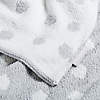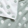 For cozy-comfort beyond the crib, our chenille stroller blanket is a lofty layer that babies will love. In a white and mist blue design, irregular circles float across the background in true whimsical fashion. The fuzzy chenille (which is French for caterpillar!) yarn is outrageously soft to the touch and keeps littles ones at a comfortable temp wherever the road takes them. The back features the same design in reversed-out hues.