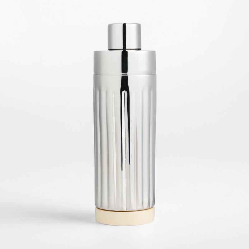 Romeo barware elevates every sip and snack with vintage-inspired elegance. Made of stainless steel with a polished finish, the cocktail shaker sparkles with fluted ribbing that not only gives the container a swank Art Deco profile but provides a sturdy grip when shaking drinks. A marbled cream resin base accentuates the elongated silhouette, while also adding stylish material and color contrast. A cap and strainer top make it easy to shake and pour handcrafted cocktails.