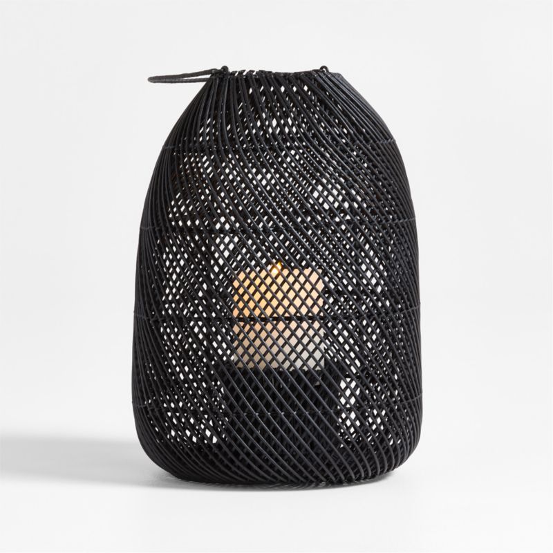 Create an intriguing display of candlelight and shadow with our large Rota lantern. Woven by talented artisans, black-stained rattan swirls an intricate crosshatch that casts light in a gorgeous diamond pattern. We love the way Rota adds a touch of drama to coastal-inspired decor.