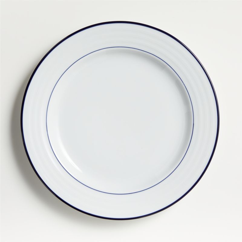 Your table will be dressed for success in this tailored cousin to our all-white Roulette dinnerware, a top-selling, customer-favorite for 23 years. Designed by Martin Hunt of Queensberry Hunt, this porcelain dinnerware collection features contemporary shapes accented with crisp navy bands and rims. Mix and match with our original white Roulette dinnerware.