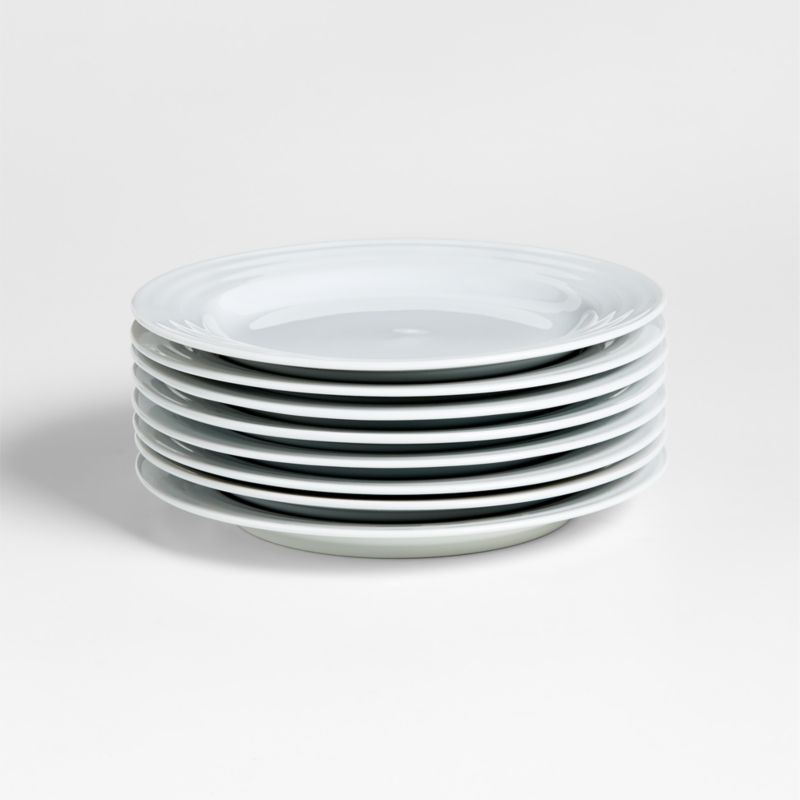 Designed by Martin Hunt of Queensberry Hunt, Roulette dinnerware has been a top-selling Crate and Barrel favorite since the pattern was introduced in 1992. Crafted of durable, pure white porcelain, Roulette features subtle concentric circles that create an eye-catching rippled effect. Mix and match with our Roulette Blue Band dinnerware.