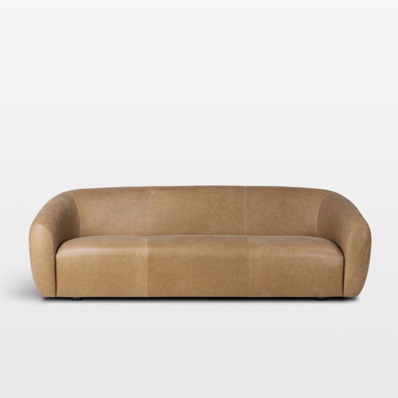 Inspired by vintage furniture, Ryder brings indulgent comfort to the timeless simplicity of modernist design. Curving contours flow arm to back, embracing a boldly proportioned waterfall seat. Impeccably tailored in top-grain taupe leather, the sofa indulges with a buttery hand and the soft support of foam-and-fiber cushioning.