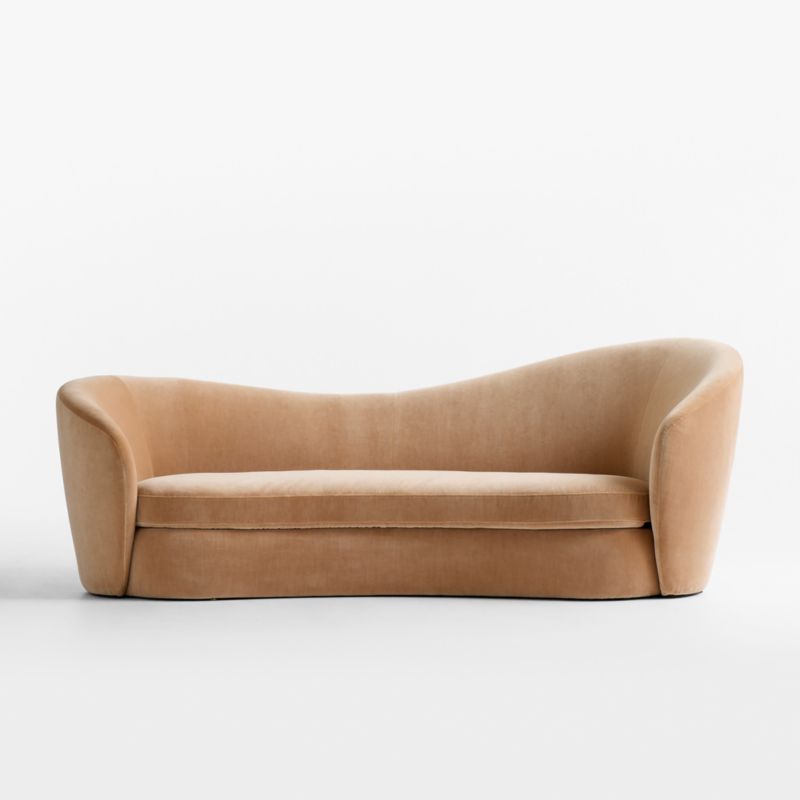 The graceful curves of a dressmaker's form provided the inspiration for our Salon sofa. The asymmetrical flow of the back slopes into arms that embrace the kidney bean-shaped seat, letting you nestle into an inviting retreat you won't want to leave. Opulent-yet-durable velvet cloaks the sculptural frame in warm chestnut.