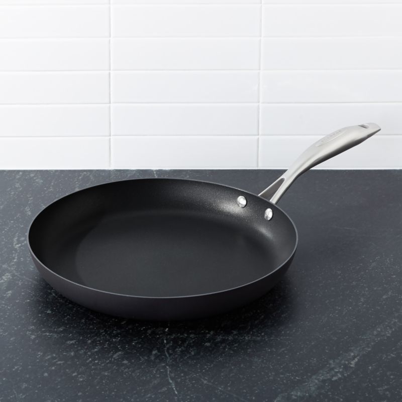 Recycled aluminum is repurposed in high-quality cookware with a touch of Scandinavian design. Made of handcast aluminum with a steel plate cast onto the bottom, the generously sized fry pan delivers uniform heat distribution and the thickness to maintain constant cooking temperatures. The patented nonstick cooking surface browns, braises, sears and deglazes with gourmet results. We love the artful arch of the stay-cool stainless steel handle.