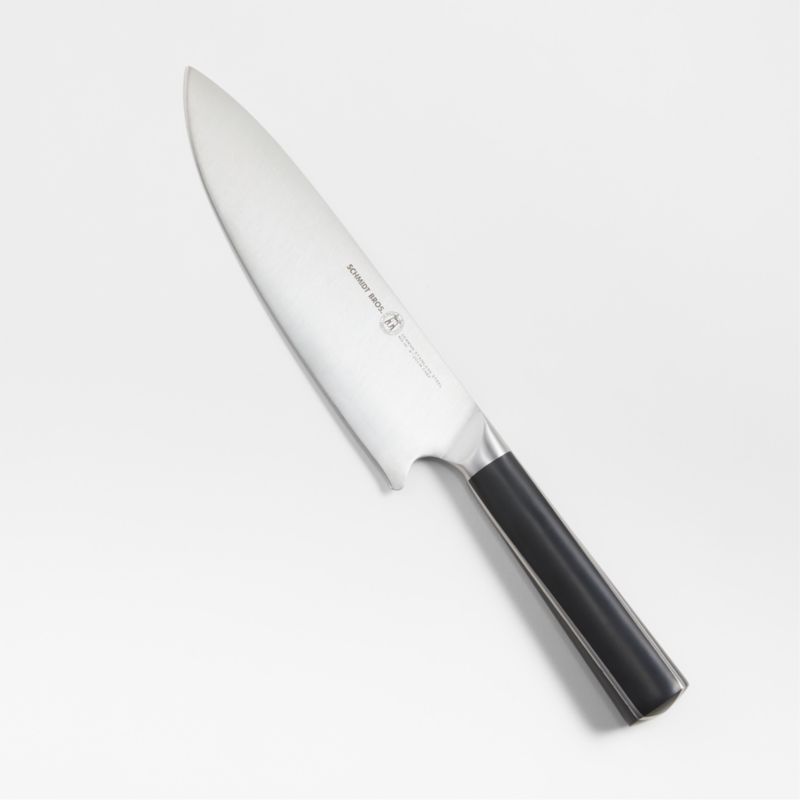 The ingenious Crosstown knife series from Schmidt Brothers utilizes two full tangs instead of one to distribute force evenly and reduce pressure needed to slice tough ingredients. The double-tang design also brings dynamic detail to this chef's knife, finishing the black ergonomic handle with a sleek X of intersecting stainless steel. Ideal for a wide variety of cutting tasks, this ultra-sharp knife is an essential addition to your kitchen cutlery collection.