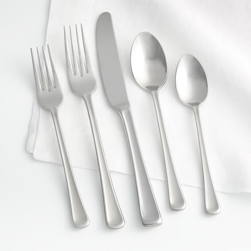 Appealing contours, subtly "scooped" handles and a sparkling mirror finish are suited to casual or formal dining. Each of the four 5-piece stainless steel placesettings includes a salad fork, dinner fork, knife, spoon and teaspoon. For a unified table, add our Scoop steak knives and serving set.