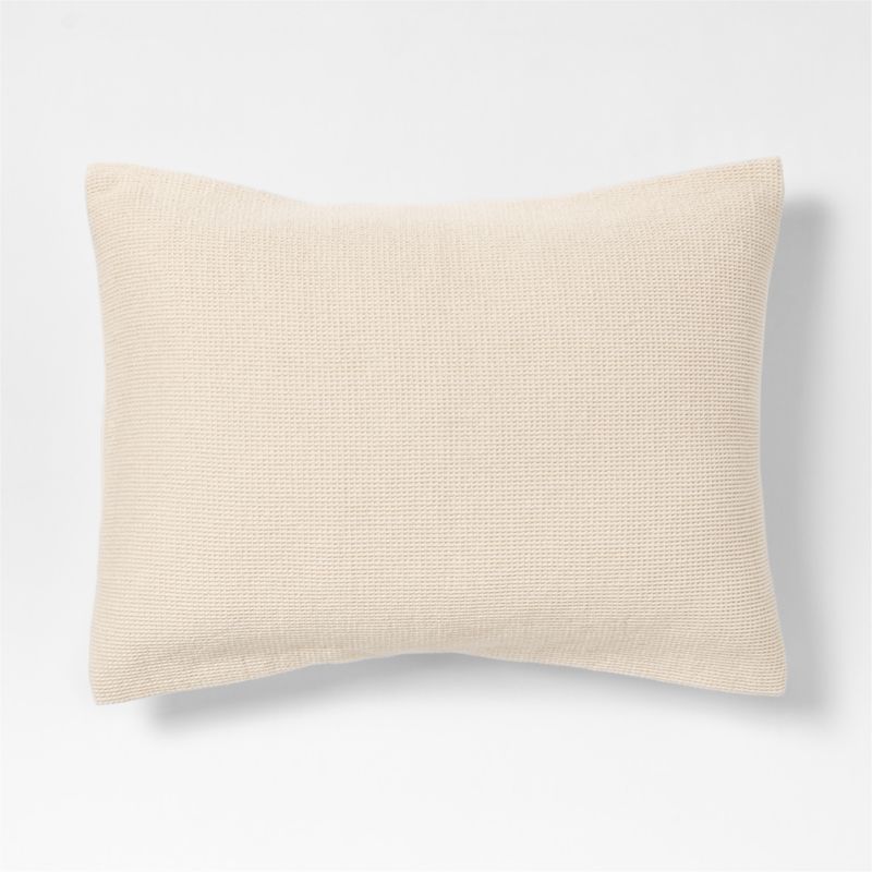 Here's the scoop on our waffle-weave bedding: In an undyed organic cotton gauze that's gentle, cozy and extra-durable, this pillow sham keeps your kid's bed looking effortlessly put-together. Reversing to smooth cotton, the sham offers two textural options in one perfect piece. The undyed cotton has a natural, earthy ecru color that pairs well with the rest of our bedding collections.