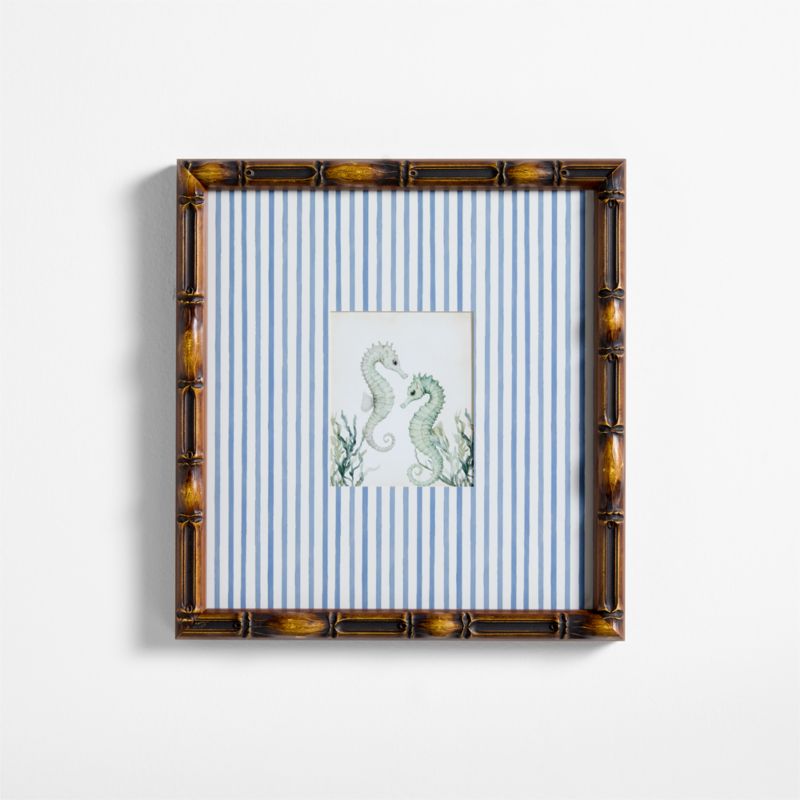 Every inch of designer Jake Arnold's sea-inspired art is designed to delight. Our Seahorse giclée print features a delicate illustration of the underwater creatures, framed by a whimsical blue-striped mat and chic bamboo-style frame. Pair it with other prints from the collection for a serene scene in a nursery or a budding marine biologist's bedroom.