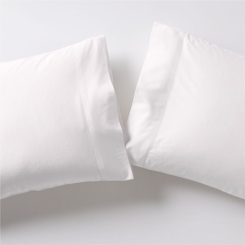 For an ultra-sophisticated yet supersoft sleep, our new Serene collection makes the bed with silky organic cotton sateen. The satiny-smooth pillowcases feel cool to the touch, while the sateen weave keeps you warm. Elegant hemstitching on the cuffs finishes the pair with a delightful detail we can't resist. Layer the pillowcases with our other lustrous Serene bedding in tranquil hues to create a luxurious retreat.