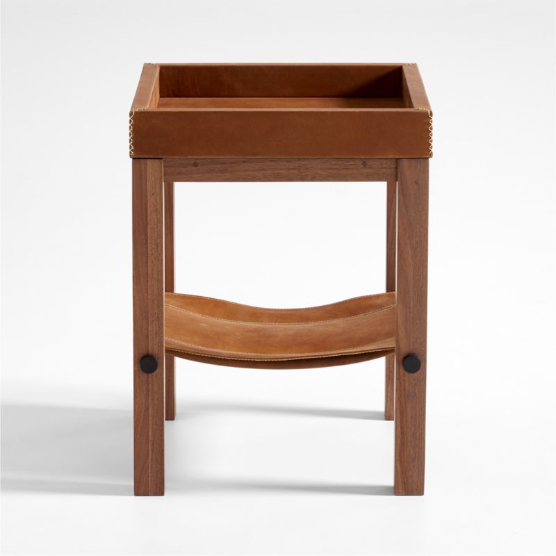 Shinola Runwell Leather and Wood End Table with Shelf