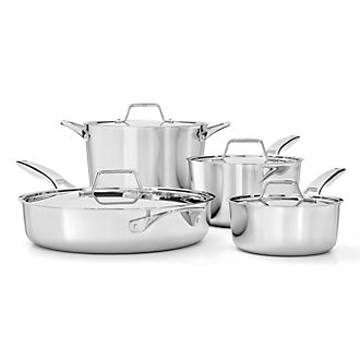 - Calphalon Stainless Steel Cookware: Despite being recognized for their hard-anodized products, Calphalon stainless steel cookware does equal justice to the brand's reputation as a manufacturer of quality kitchen products. With its shiny silver finish, this Calphalon cookware looks great atop the range or suspended from a ceiling pot rack when not in use.
