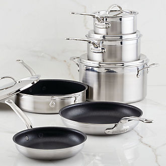 Anyone who loves to cook knows that having the right pots and pans is essential, but with so many good cookware brands on the market, it can be hard to know which one is right for you. One of the easiest ways to decide is by assessing your own enjoyment of cooking. If you tend to see meal prep as a simple necessity, the top cookware brands for you are those that prioritize durability and ease of use. Consider All-Clad cookware and Calphalon pots and pans for workhorse options that heat quickly and clean up easily. A Cuisinart cookware set is also a smart pick for students heading off to college or engaged couples creating a gift registry. Those who enjoy making food, on the other hand, might want to consider purchasing a few pieces from luxury high-end cookware brands to elevate their craft. Copper pots and pans from Ruffoni or upscale Scandinavian-designed SCANPAN cookware combine sleek looks with professional quality to take your hobby to the next level. Got an eye for design? Show it off with colorful kitchenware. Customer favorites such as Staub, Milo by Kana, Caraway and Le Creuset are among the top kitchen brands for adding a vibrant pop to your stovetop.