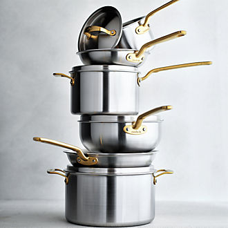 Anyone who loves to cook knows that having the right pots and pans is essential, but with so many good cookware brands on the market, it can be hard to know which one is right for you. One of the easiest ways to decide is by assessing your own enjoyment of cooking. If you tend to see meal prep as a simple necessity, the top cookware brands for you are those that prioritize durability and ease of use. Consider All-Clad cookware and Calphalon pots and pans for workhorse options that heat quickly and clean up easily. A Cuisinart cookware set is also a smart pick for students heading off to college or engaged couples creating a gift registry. Those who enjoy making food, on the other hand, might want to consider purchasing a few pieces from luxury high-end cookware brands to elevate their craft. Copper pots and pans from Ruffoni or upscale Scandinavian-designed SCANPAN cookware combine sleek looks with professional quality to take your hobby to the next level. Got an eye for design? Show it off with colorful kitchenware. Customer favorites such as Staub, Milo by Kana, Caraway and Le Creuset are among the top kitchen brands for adding a vibrant pop to your stovetop.