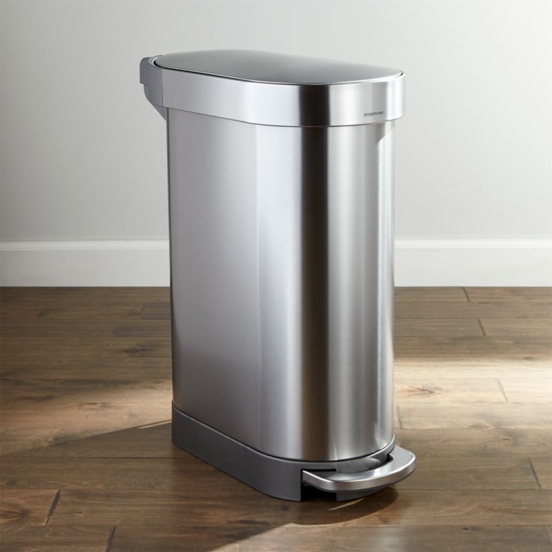This trash can's space-efficient design fits perfectly into tight spots. Full of all the details that put simplehuman trash cans ahead of the curve, the can features an easy-lift liner rim can and an innovative, a stainless steel rim that grips the liner to keep unsightly edges concealed. The strong steel step pedal is engineered to last with patented lid shox technology to ensure a smooth, silent close every time.