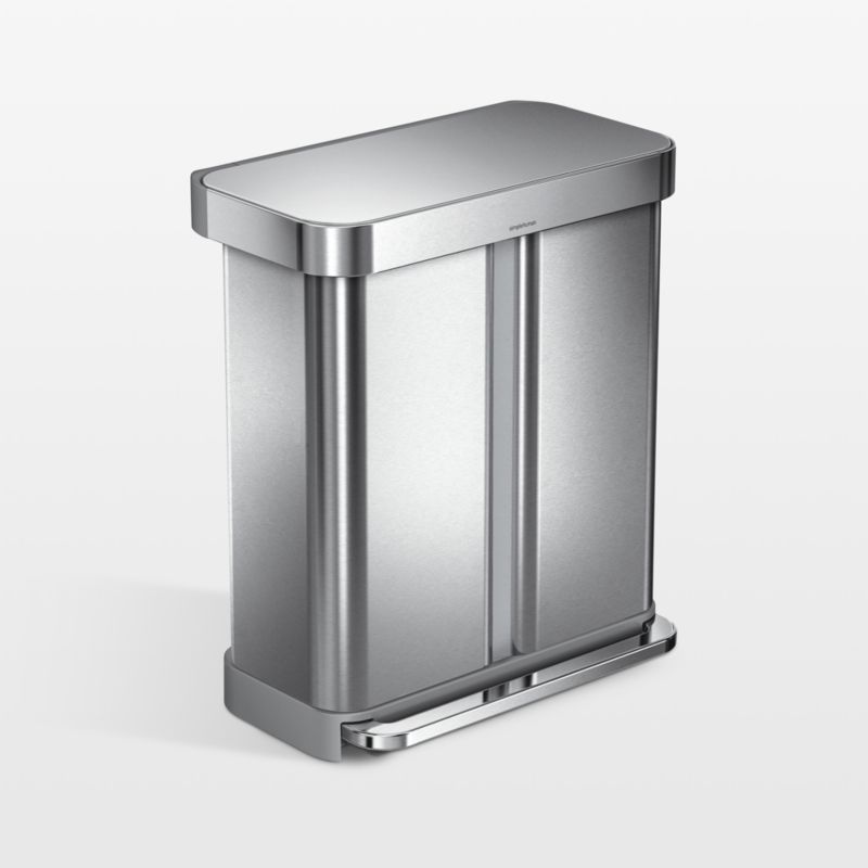 This handsome recycler separates trash from recyclables with efficiency and style. Inside its slim-lined, gleaming stainless steel exterior is a dual bucket design with a built-in liner dispenser that stores bags right where you need them. A liner rim flips up to change liners and closes over the new liner, keeping it in place and hidden from view. The step can design features an extra-wide steel pedal that's engineered to last 150,000 steps—20 steps a day for 20 years. The recycler's patented lid technology controls the motion of the lid for a slow, silent close.
