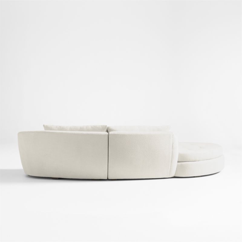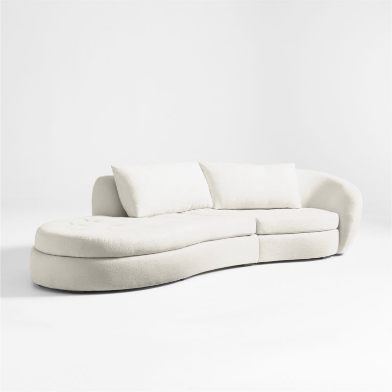 Our Sinuous sectional collection softens a room's inherent angles with serpentine curves. Elegant and sculptural, the two-piece sectional brings casual comfort to its sophisticated, mid-century modern-inspired design with deep yet supportive seats and pillowy back cushions. Consisting of a left-arm chaise and right-arm chair, the sectional is upholstered in a slightly nubby, ivory-colored fabric for a bit of texture and a timeless look. Designed to be flexible to suit your space, the Sinuous sectional collection is equally at home in a formal living room as a lived-in family room.