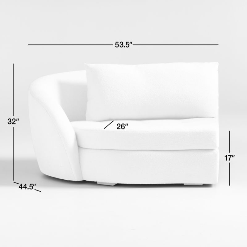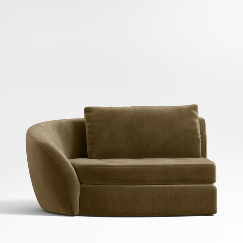 Our Sinuous sectional collection softens a room's inherent angles with serpentine curves. Elegant and sculptural, the left-arm chair brings casual comfort to its sophisticated, mid-century modern-inspired design with a deep yet supportive seat and pillowy back cushion. Coppery brown velvet lends plush texture and a timeless look. Designed to be flexible to suit your space, the Sinuous sectional collection is equally at home in a formal living room as a lived-in family room.