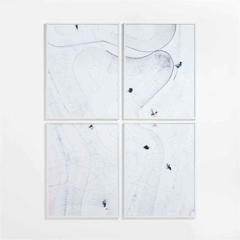 The undulating curves and valleys of a skate park are teeming with effortless cool. Exclusive to Crate & Kids, the aerial shot by Barcelona photographer duo Orbon Alija creates a sense of kinetic energy, yet the overall effect is calming when spread across the four framed photos. The high-quality giclée prints reproduce the nuanced hues and detail of the original work, and white frames add to the chill factor. This large-scale piece is a big-time vibe shift for the kid's room, playroom or even a modern living room.