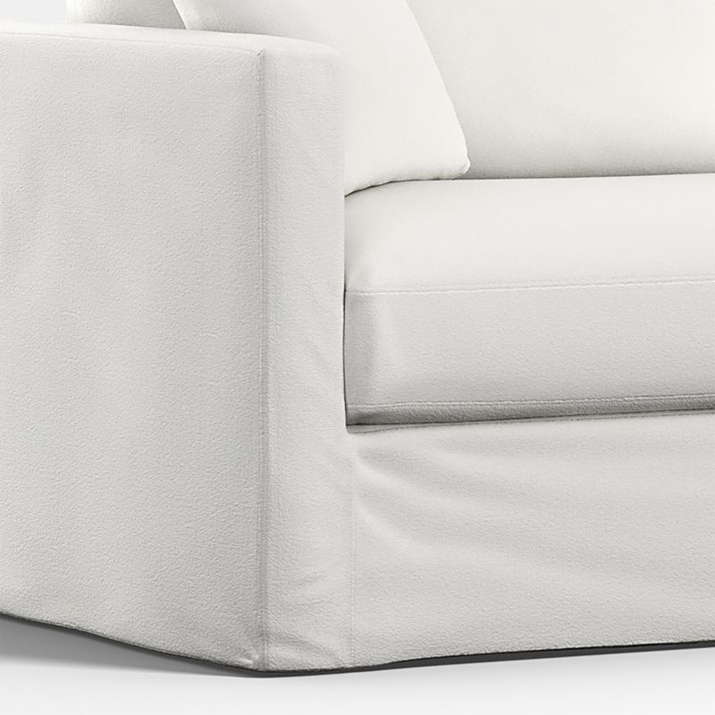 Fitted yet casual, our Willow slipcovers relax the collection's modern lines with cottage style. Tailored with topstitching, the apartment sofa slipcover has the laid-back cool of washed cotton that's easy to clean and stain resistant. Best dry cleaned, the slipcover can be machined washed in cold water with mild detergent. Tumble dry on low for three minutes then dry on air dry cycle until slightly damp; return to frame while damp.