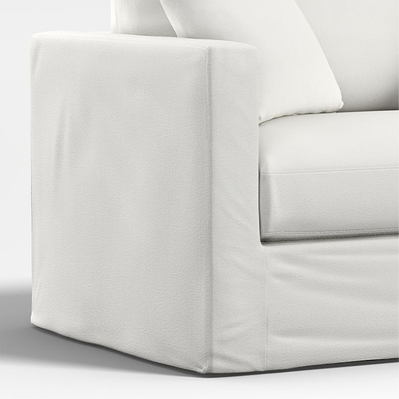 Fitted yet casual, our Willow slipcovers relax the collection's modern lines with cottage style. Tailored with topstitching, the chair and a half slipcovers have the laid-back cool of washed cotton that's easy to clean and stain resistant. Best dry cleaned, the slipcovers can be machined washed in cold water with mild detergent. Tumble dry on low for three minutes then dry on air dry cycle until slightly damp; return to frame while damp.